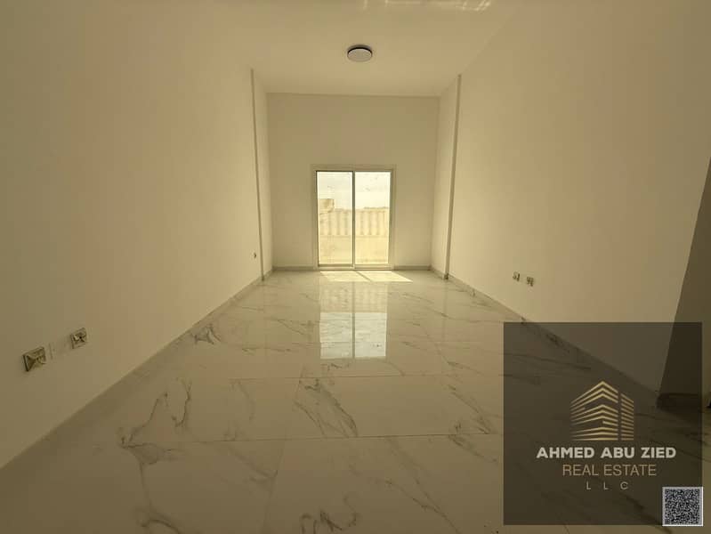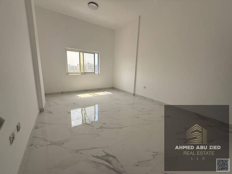 Very spacious 1 bedroom apartment for annual rent, 2 bathrooms, balcony with open view, central AC, first tenant, prime location, easy access to Dubai